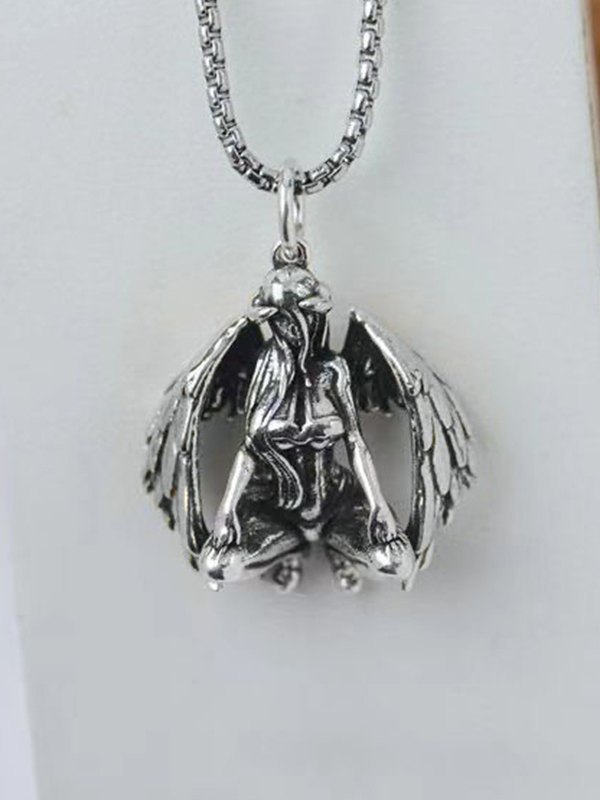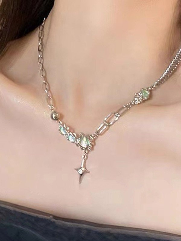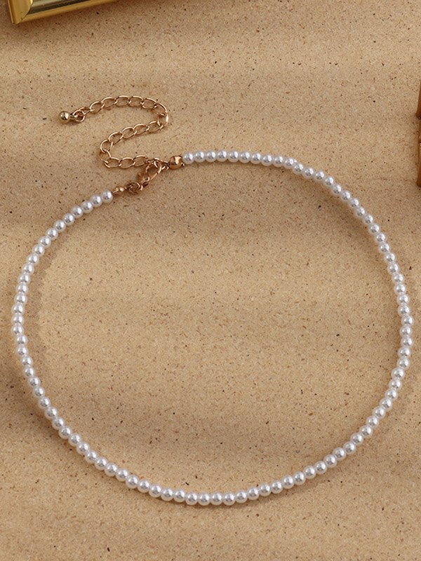 Men’s Rhinestone Cross Pendant Faux Pearl Necklace