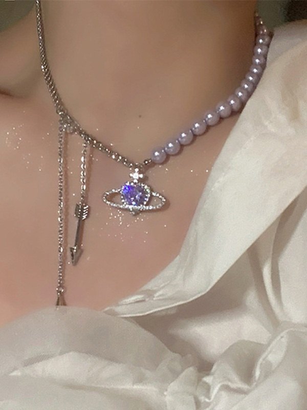 Zircon Heart Charm Faux Pearl Necklace