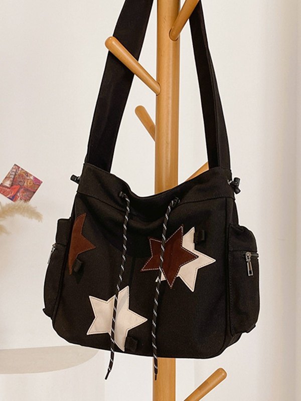 Contrasting Star Print Canvas Bag