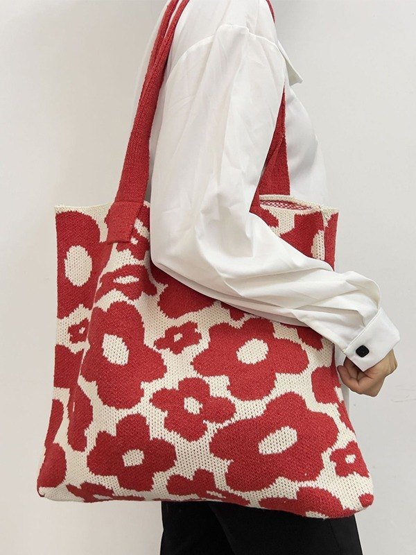 Floral Jacquard Knitted Tote Bag
