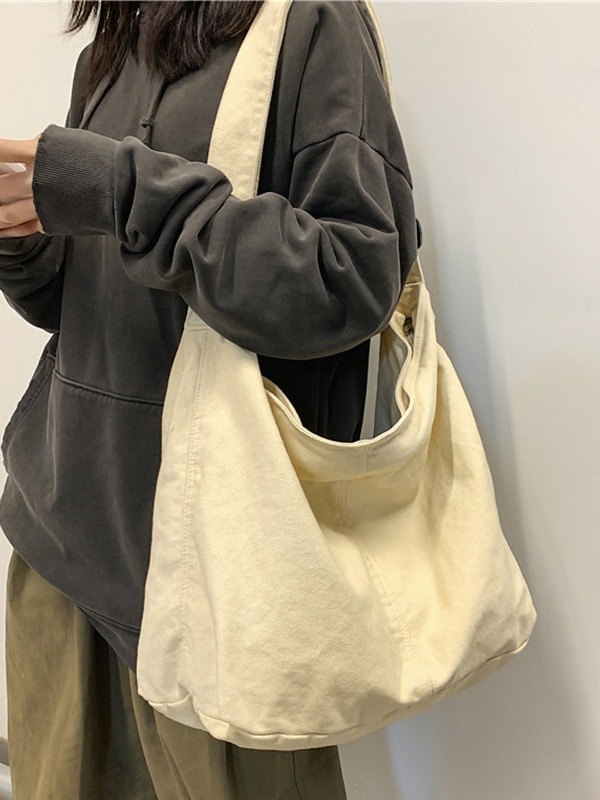 Washed Large Canvas Shoulder Bag
