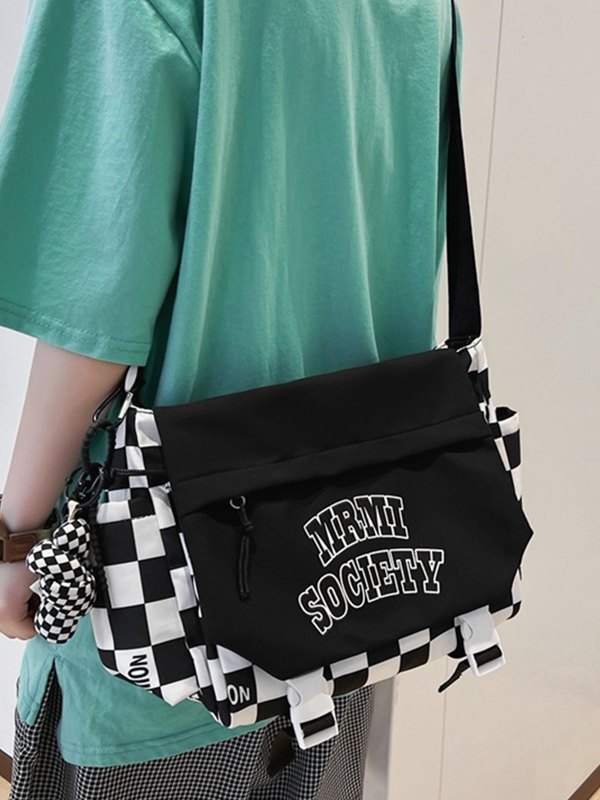 Buckle Strap Checkered Nylon Crossbody Bag