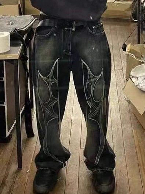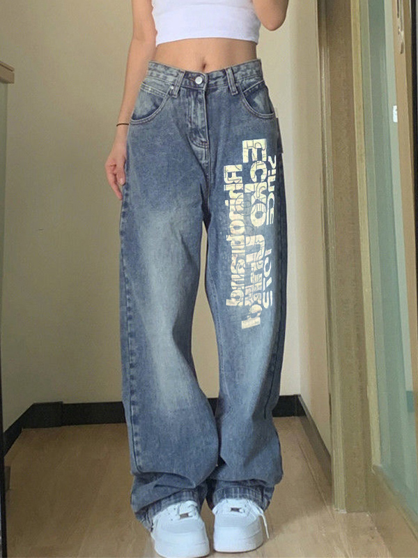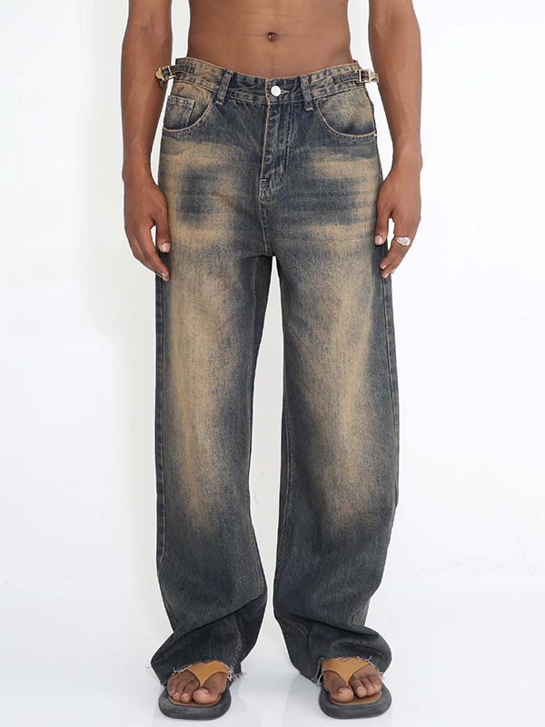Men’s Vintage Wash Straight Leg Loose Jeans
