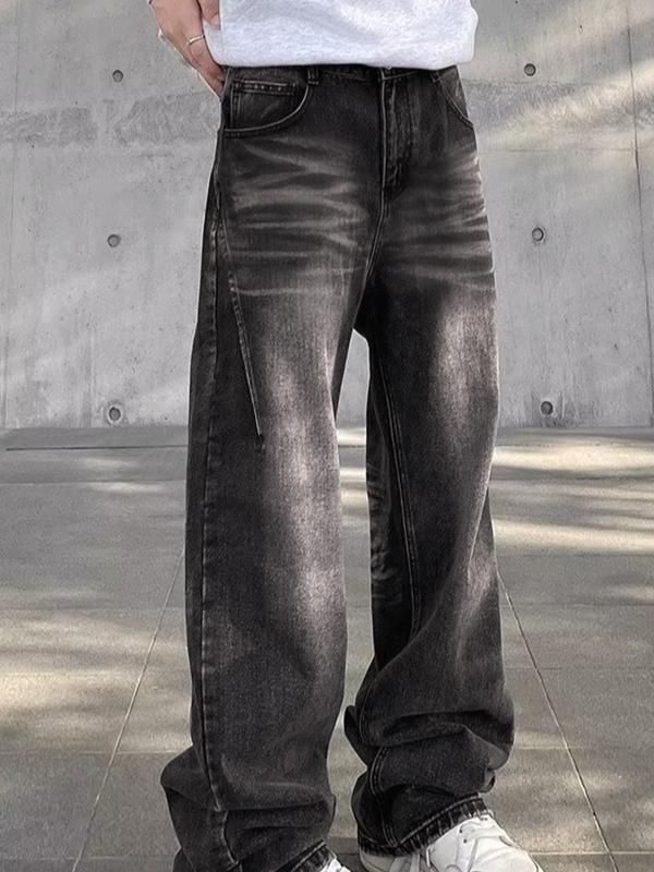 Men’s Street Water Ripple Print Loose Jeans