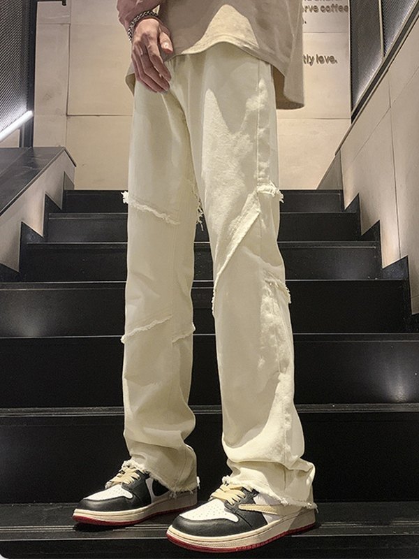 Men’s Hip Pop Tie Dye Splice Loose Jeans