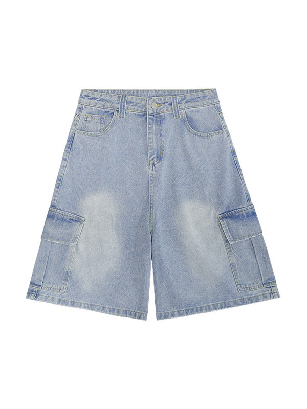 Solid Elastic Waist Multi Pocket Drawstring Shorts