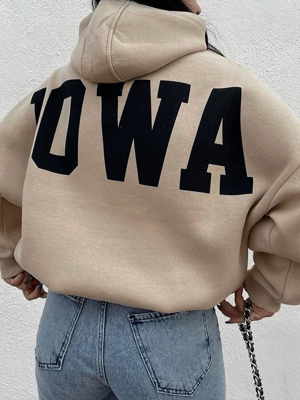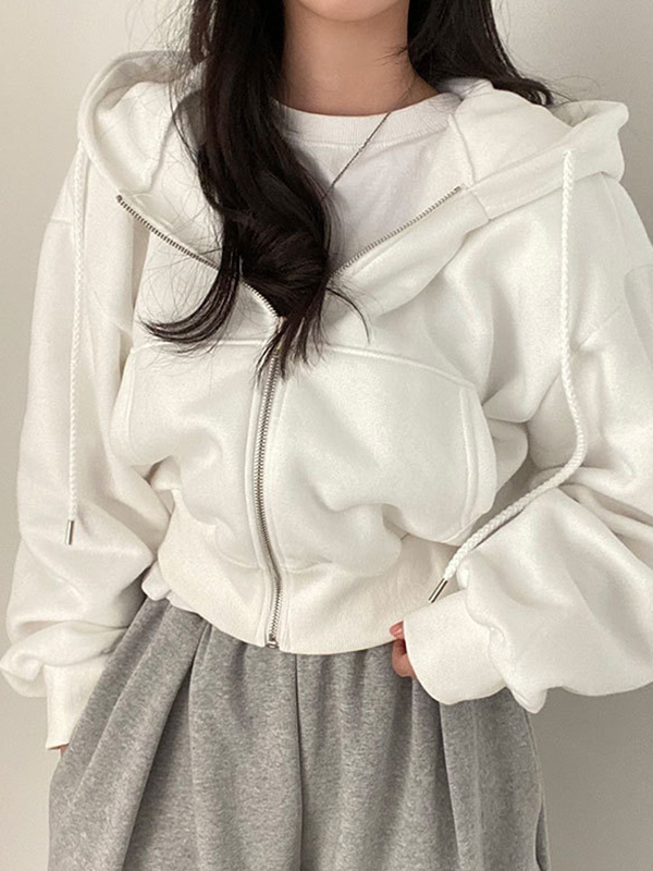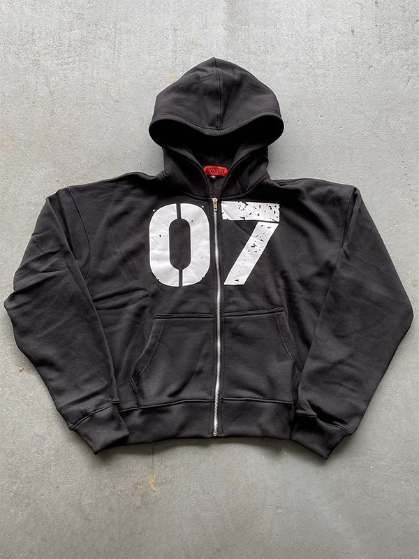 Polar Fleece Star Embroidered Zip Up Oversized Hoodie