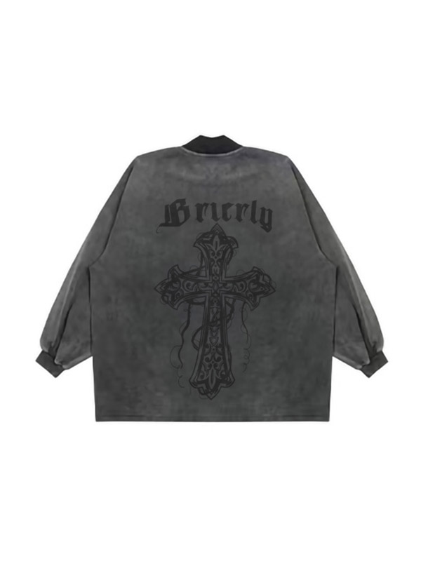 Men’s Distressed Collar Neck Cross Print Sweatshirt