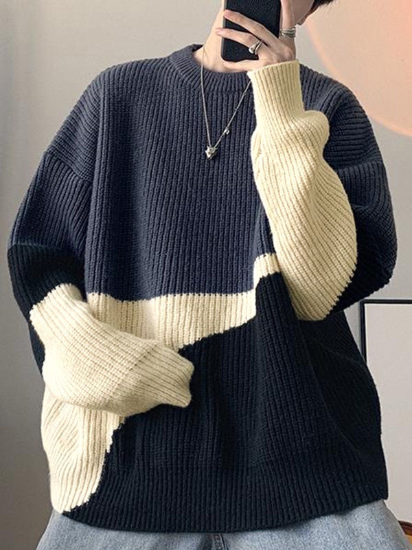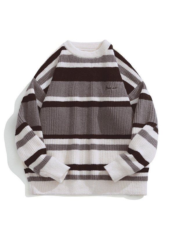 All Over Cartoon Jacquard Crew Neck Knit Sweater