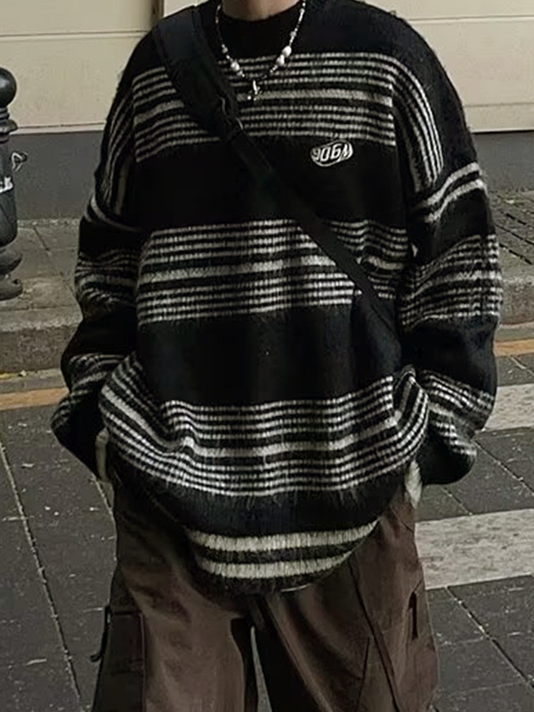 Men’s Contrast Color Letter Embroidery Labeling Knit Sweater