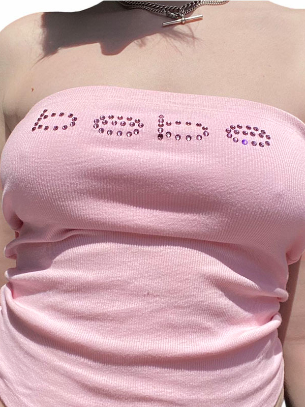 Letter Rhinestone Print Bandeau Top