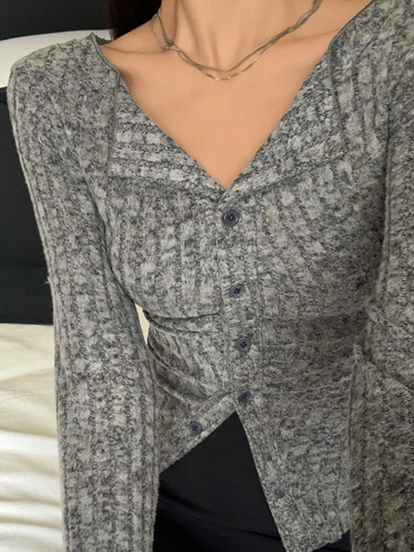 Solid Color Breasted Hooded Slim Long Sleeve Knit