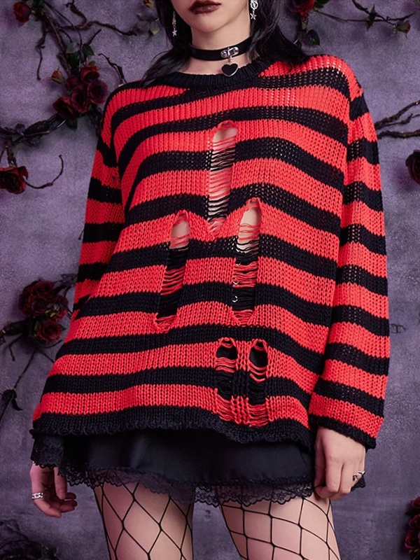 Solid Ribbed Crew Neck Long Sleeve Knit