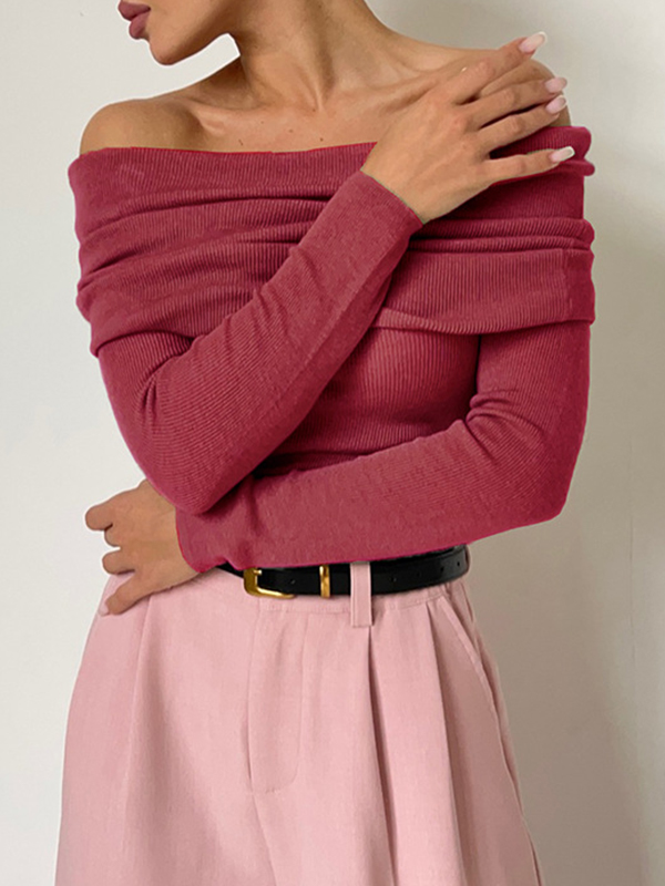 Solid Color Square Neck Bow Slim Long Sleeves Knits