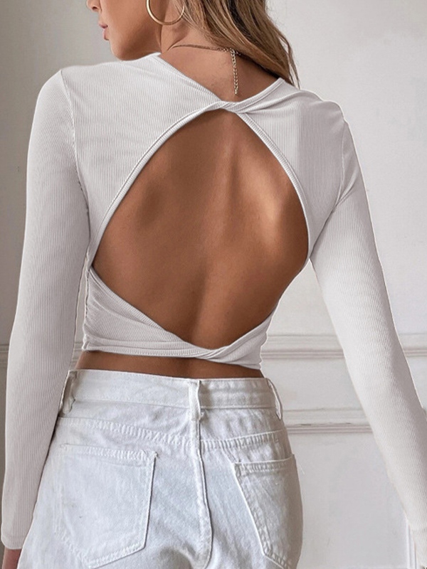 Solid Cutout Backless Twist Back Long Sleeve Knit