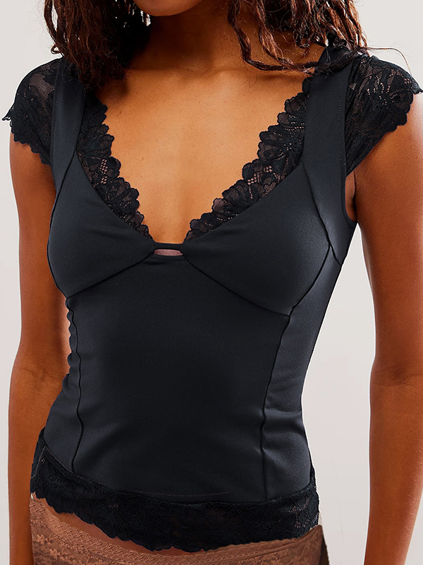 V-Neck Lace Cut-Out Slimming Cami Top