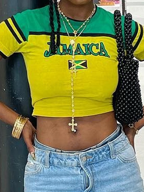 Contrast Letter Print Color Block Pullover Short Sleeve Tee