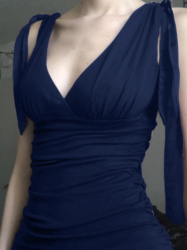 Plain V Neck Gathered Tank Top