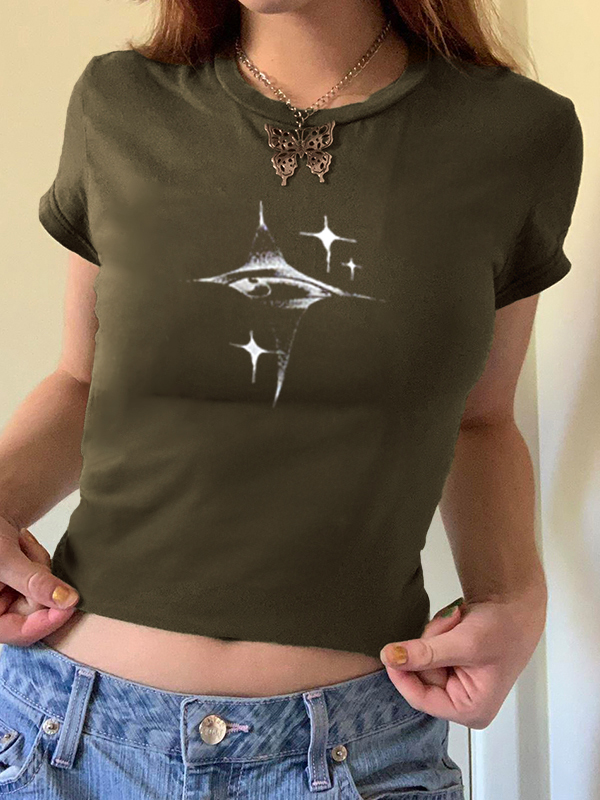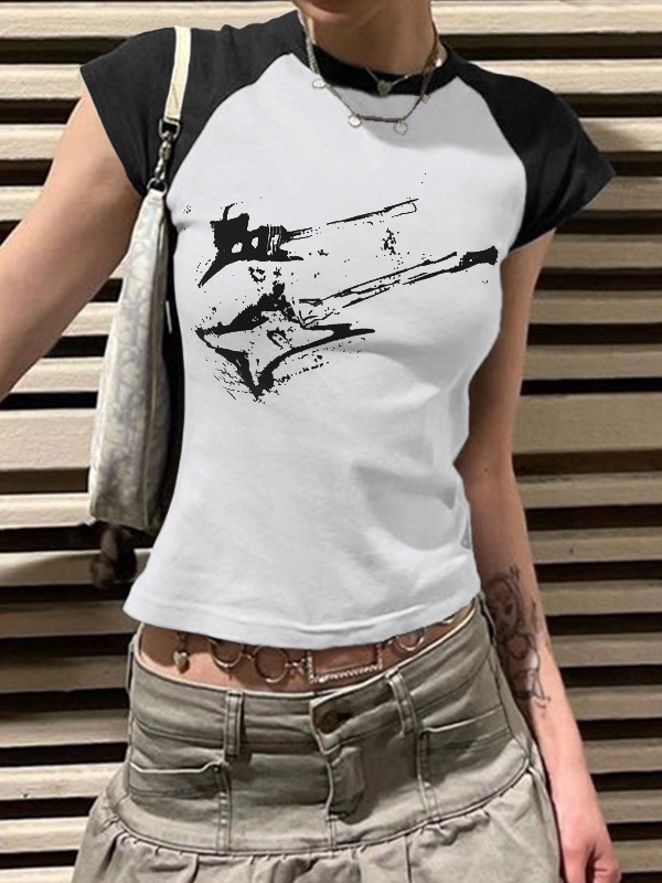 Lettering Raglan Sleeve Print Short Sleeve Tee