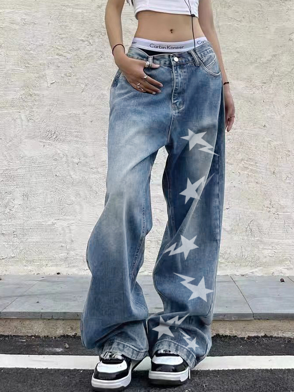 High Waist Straight Leg Washed Trousers Ripped Jeans