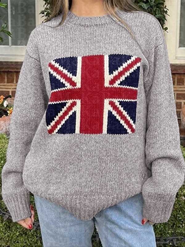 Flag Jacquard Crew Neck Pullover Sweater
