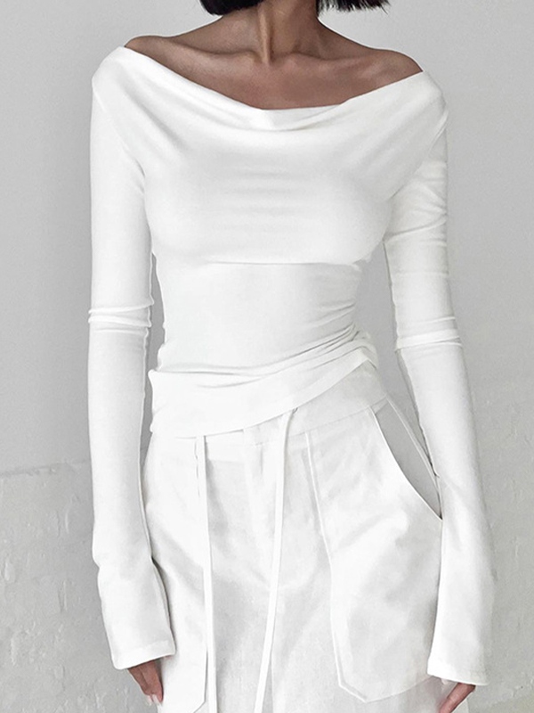 Solid Color Stacked Neck Backless Lacing Long Sleeve Tee
