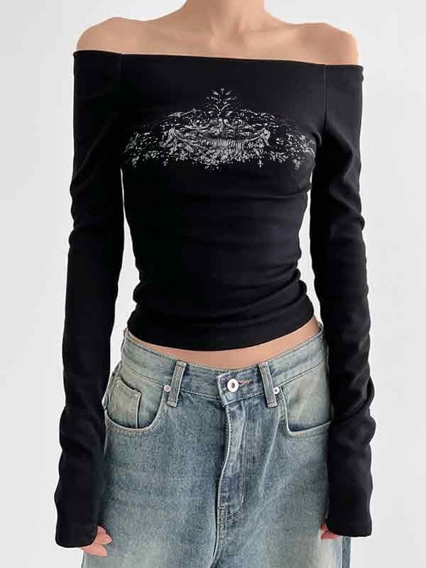 Solid Tattered Off Shoulder Long Sleeve Knit