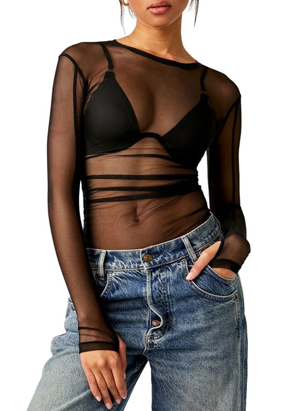 Letter Print One Shoulder Thin Long Sleeve Tee