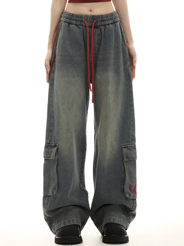 Loose patchwork stripes Cargo Jeans