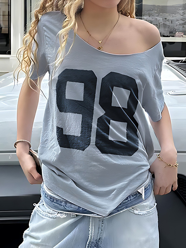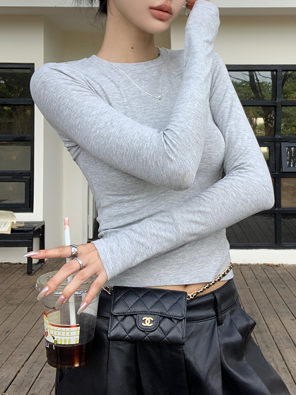 Round Neck Straight Shoulder Long Sleeve T Shirt