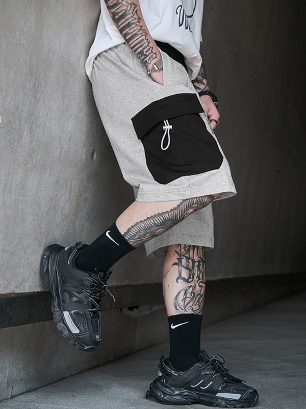 Men’s Contrast Color Large Pocket Casual Shorts