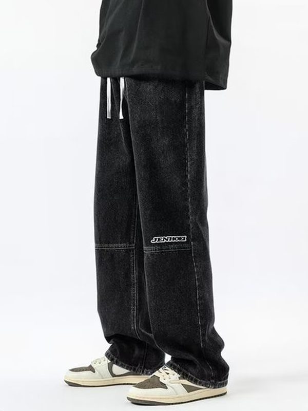Men’s Letter Embroidery Drawstring Loose Jeans