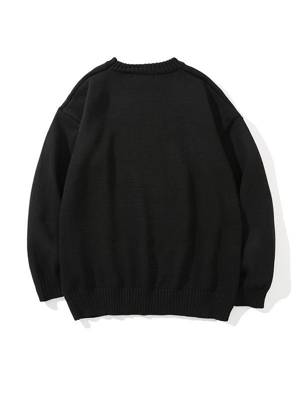 Description: Crafted from cotton knit fabric, these chic punk-vibe features a design of darkness letter statue pattern to the front, with drop shoulders, ribbed trims at collar, cuffs and hemline design.