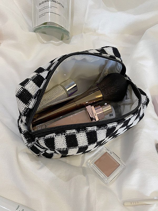 Knit Checkered Pattern Makeup Bag