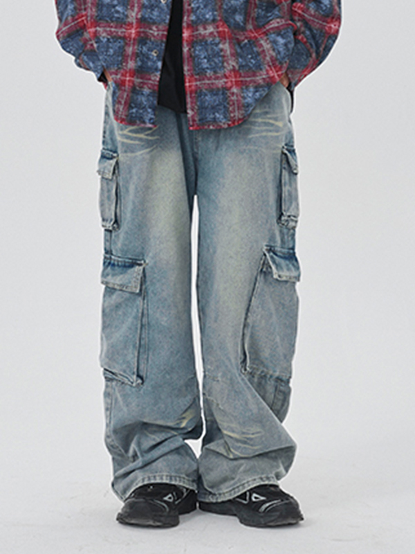Men’s Distressed Ripped Pattern Print Loose Jeans