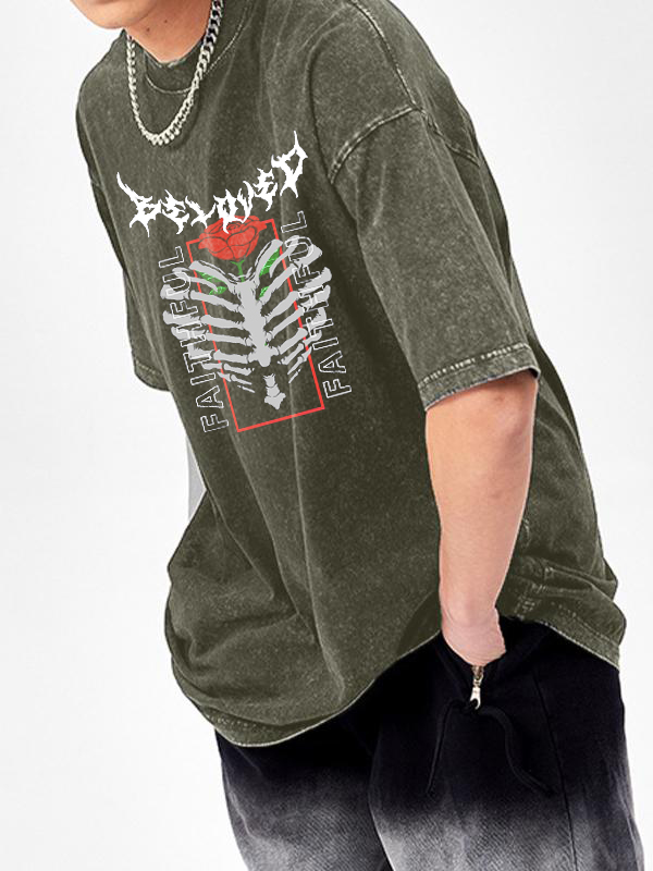 Men’s Hip Pop Cross Skull Print Oversized Hoodie